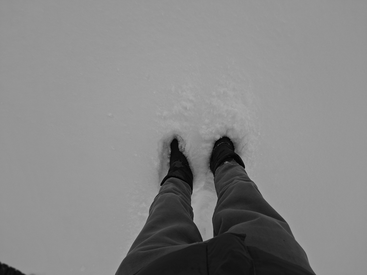 Это были похоже следы зайца, а за ним двигались собака и человек. Следы потерялись, когда закончился лесной массив, а дальше по склону горы была едва видна заснеженная тропинка.