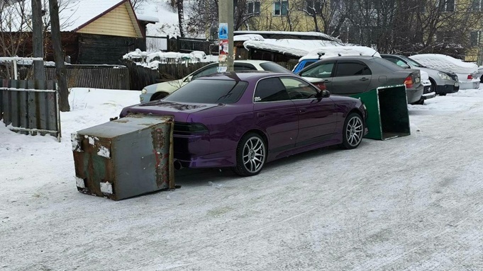 На Алтае автомобиль заблокировали мусорными контейнерами за неправильную парковку