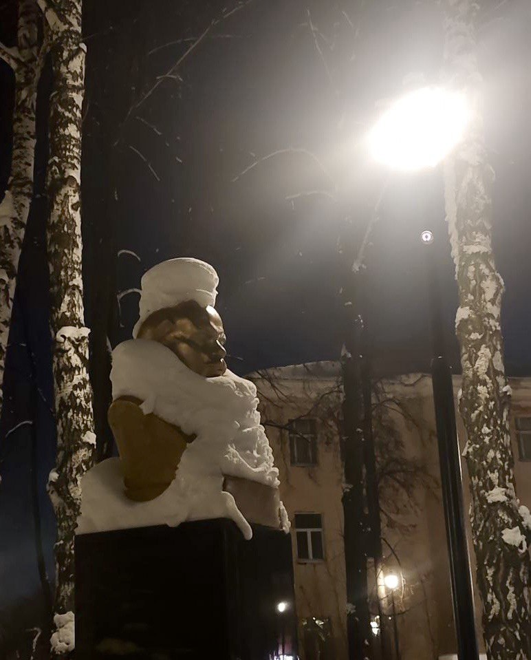 Даже Владимир Ильич укутался в пушистую шапку и шарф 😀