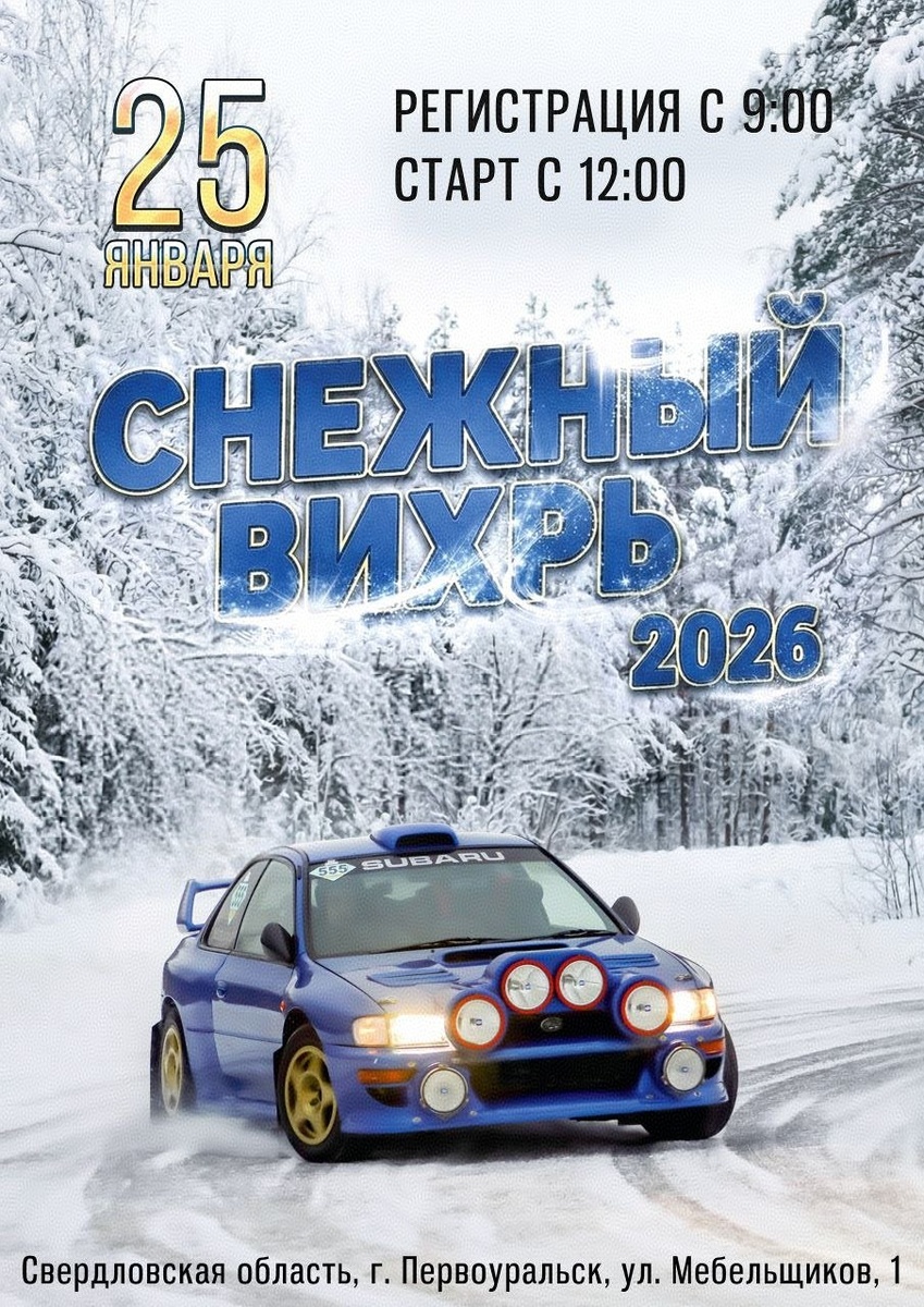 !❄ 25 января, воскресенье, Свердл. область, г.Первоуральск, ул.Мебельщиков, 1, координаты яндекс: 56.903911, 60.014356 Полная конфигурация трассы, с параллельной дорожкой и проездами по мосту и под мостом: зрелищно и технически интересно) 🚗 Стандарт, Тюнинг, Классика, Свободный, Спорт Гражданский шип, участие может принять любой желающий! Предварительная регистрация: vk.cc/cTr6O6 Тайминг: 9:00 до 11:00 Регистрация участников с 9:30 до 12:00 Тренировки 12:00 Брифинг, основные заезды 18:00 Завершение (исходя из количества участников) УТС "Снежный Вихрь" - это • Тренировки для пилотов любого уровня подготовки • Возможность выплеснуть адреналин на специальном треке • Полевая кухня и мобильная кофейня, чтобы подкрепиться • Сувениры, фирменный мерч от команды DRIVE RACING • Вход для зрителей без оплаты! @uralautoclub