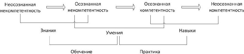 Тема возле ступеней обучения и лестницы Ханта Чтобы человек начал глубже разбираться в какой-то теме, он должен понять, что не очень-то в этой теме и разбирается. (главбух хочет «исправления ошибок в настройках 1С», программист хочет ТЗ. Если кому-то заглянуть на соседнюю поляну и узнать о кодах дохода 20хх и как железяка с ними обращается и т.п, то проблема становится видна. LLM хорошо помогают) Варианты, как показать человеку, что он НЕзнает: «Объясни, как ты это делаешь?» («все понимает, но сказать не может» - это только для собак хорошо) «Когда это вариант перестанет работать» «Как это сделать в таких-то__ условиях?» Если человек говорит, что в него завал работы и ему некогда думать, работать нужно — скорее всего он уже все знает (= дурак). А дурака учить, как известно, что мертвого лечить. p.s. Но перегруз правда может быть😜 p.p.s Модель Н.Бёрча (на картинке) часто рисуют в виде матрицы или круга, но смысл этого мне неясен.