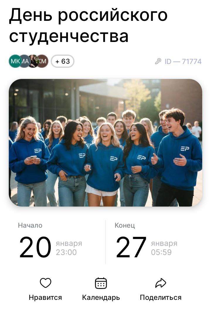 ! 🎉 25 января в России отмечается День студенчества — праздник, корни которого уходят в 1755 год, когда был основан Московский университет. Это день, символизирующий силу знаний, молодости и будущего нашей страны! Приглашаем всех студентов и не только отметить этот день вместе! В библиотеке пройдёт отличное интеллектуальное развлечение: ♟ Турнир по шашкам, приуроченный ко Дню студента! 📅 Дата: 25 января ⏰ Время: 11:30 📍 Место: Тындинская городская библиотека Ждём всех, кто хочет провести время в дружеской атмосфере, проявить смекалку и, возможно, выиграть приз! 😉 🔔 Рекомендуем также присоединиться к большому праздничному событию в приложении «ВВЕРХ.ПРО»! Участвуйте в акциях, делитесь впечатлениями и отмечайте День студента вместе со всей страной. ➡️ Ссылка на событие: https://vverh.er.ru/event/71774 Участвуйте, общайтесь, делитесь эмоциями! #ДеньСтудента #Тында #Студенчество2026 #ТурнирПоШашкам #БиблиотекаТында #МероприятияТынды #МолодежьТынды