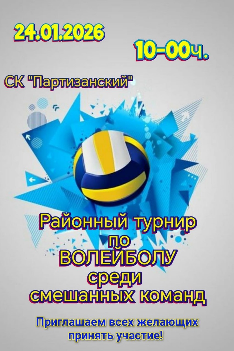 24 января 2026 года на базе спортивного комплекса «Партизанский» состоится районный турнир по волейболу