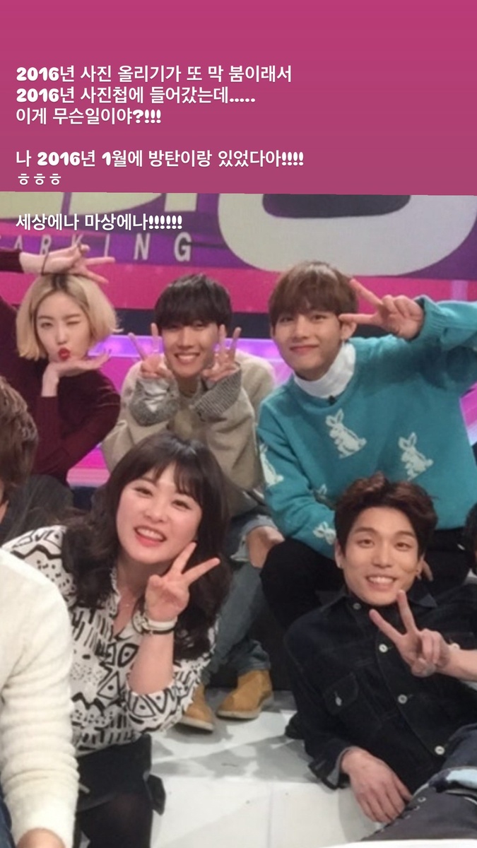 🍊 Корейская комедиантка и актриса Шим Джин Хва поделилась фотографией с Тэхёном и Хоби 2016 года в Instagram story