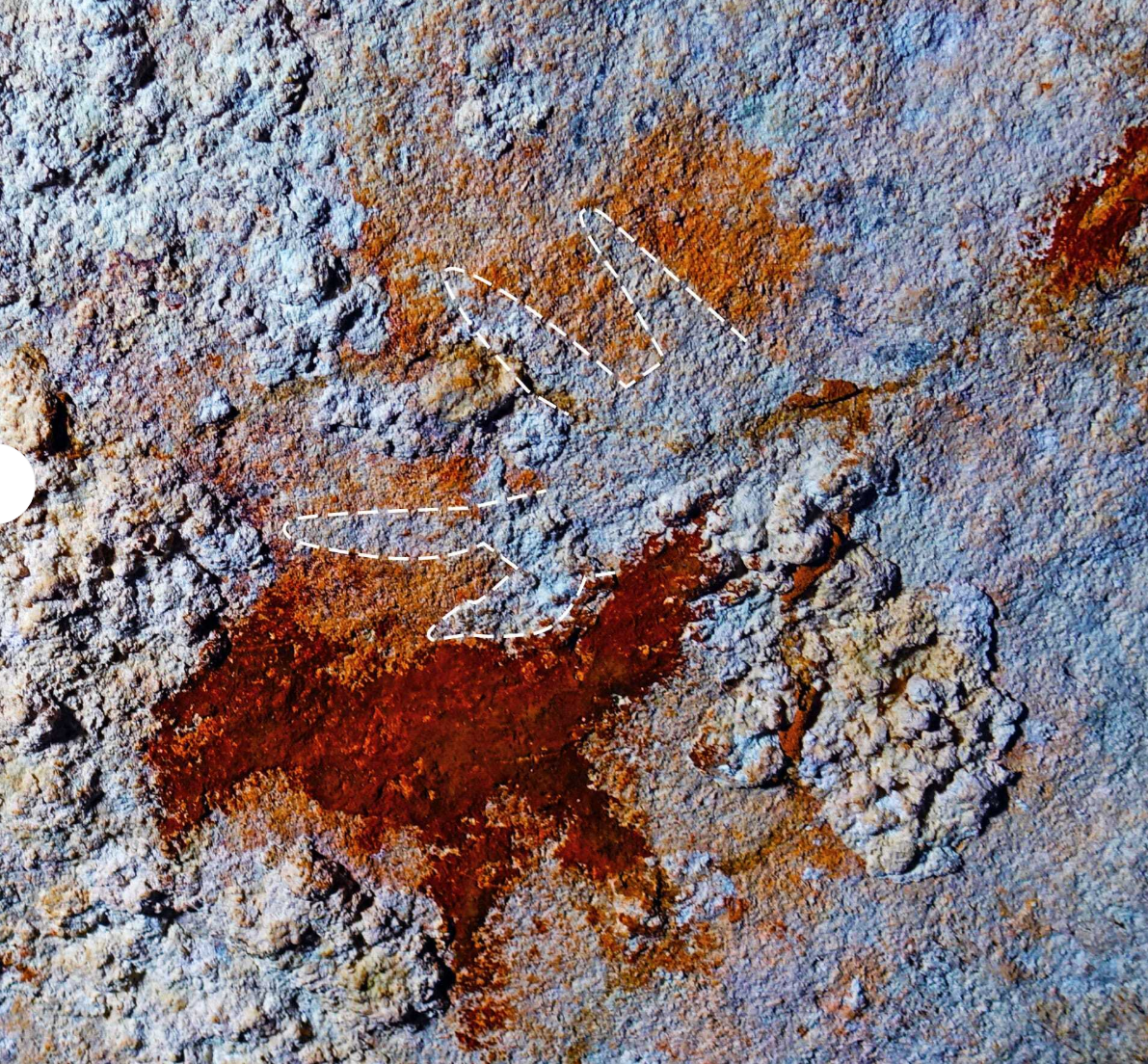 На ней изображён красный контур руки, пальцы которой, по словам исследователей, были переделаны, чтобы создать мотив, напоминающий когти, что указывает на ранний этап развития символического воображения.