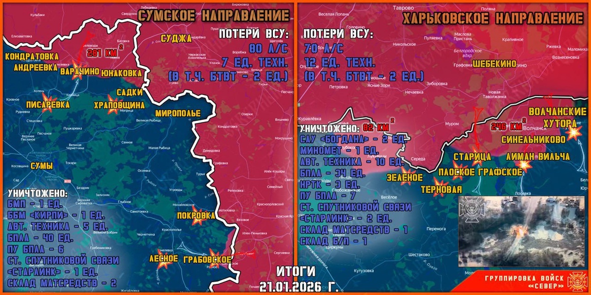 21 января группировка войск "Север" продолжила создание полосы безопасности в Харьковской и Сумской областях