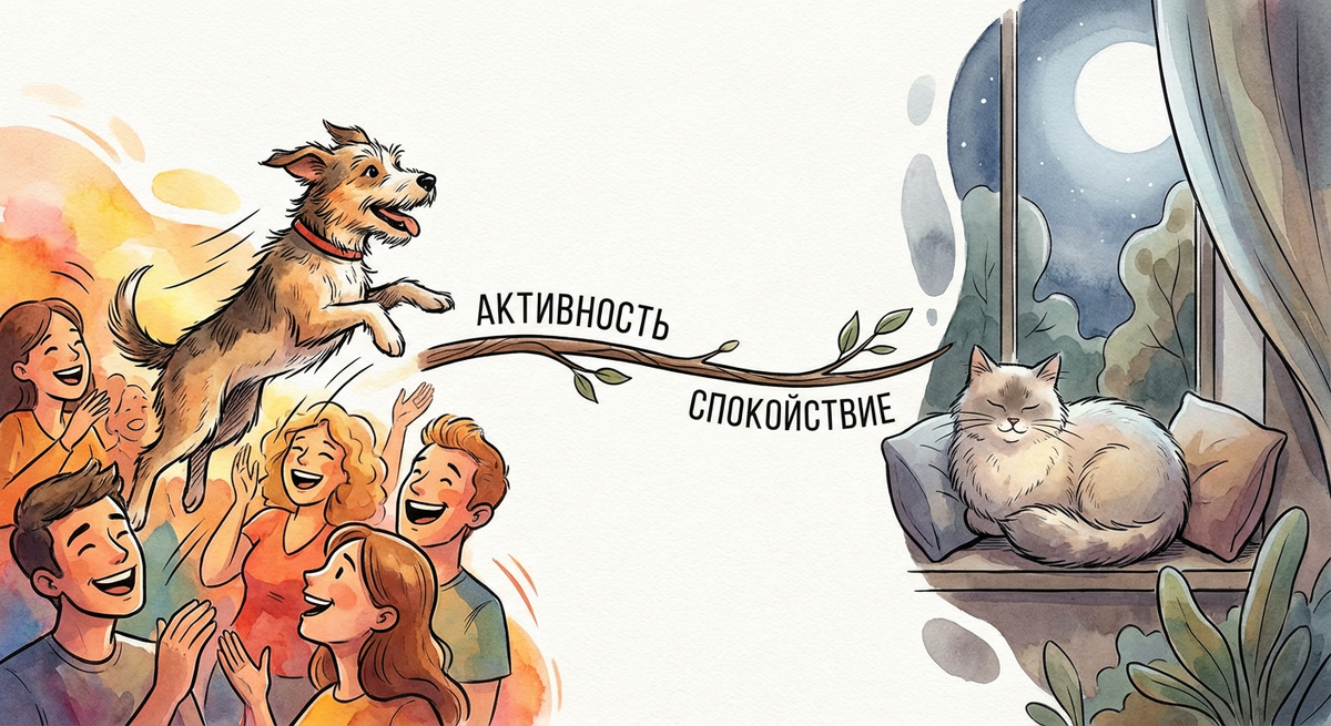 «Кошки — независимые интроверты, а собаки — дружелюбные экстраверты» — так мы часто говорим и думаем про четвероногих друзей. Но насколько это действительно правда, и есть ли научные основания называть, поведение животных «экстраверсией» или «интроверсией» в человеческом смысле? Давайте разберёмся — не только на уровне впечатлений, а на основе подтвержденных данных. Когда мы говорим о «экстравертах» и «интровертах», имеем в виду понятия из психологии человека — устойчивые способы взаимодействия с миром, социальной активностью и уровнем потребности во взаимодействии с окружающими. Но современная наука уже подтверждает: животные обладают устойчивыми индивидуальными поведенческими чертами, которые действительно можно измерить и описать. Исследования показывают, что как собаки, так и кошки демонстрируют устойчивые паттерны поведения — в разной степени общительность, активность, любопытство, страх, реактивность, и другие черты. Именно эти измеряемые поведенческие особенности сравнимы с ч