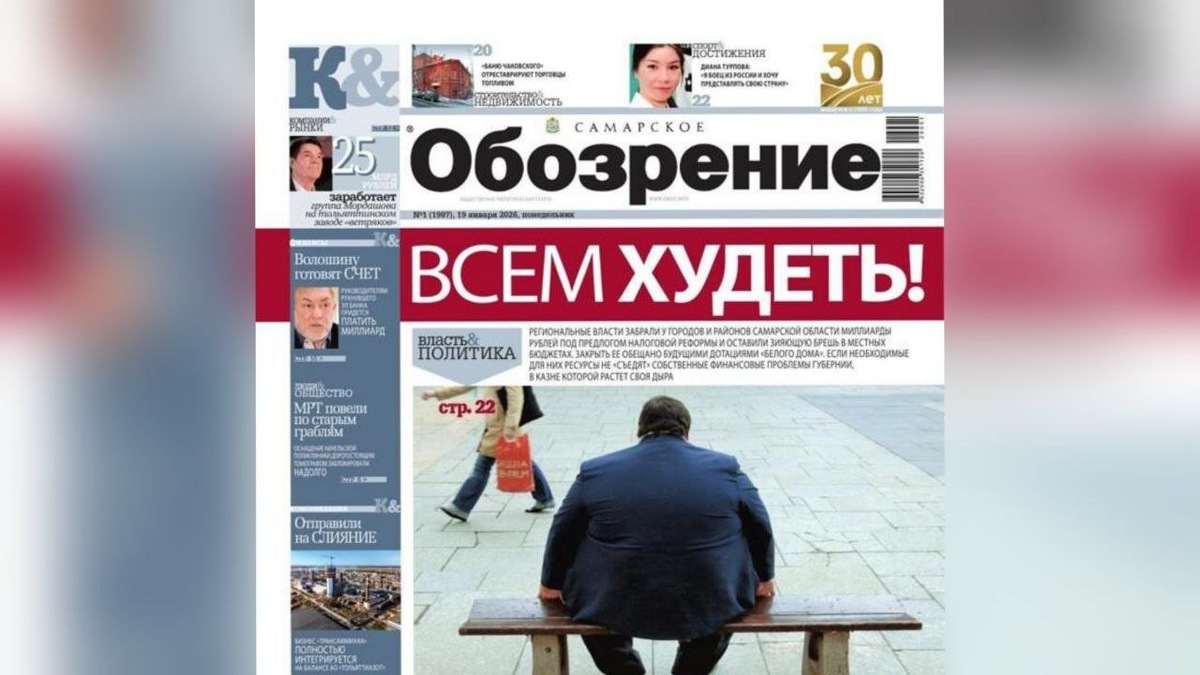 ! 👤ВСЕМ ХУДЕТЬ! Региональные власти забрали у городов и районов Самарской области миллиарды рублей под предлогом налоговой реформы и оставили зияющую брешь в местных бюджетах. Закрыть ее обещано будущими дотациями «белого дома». Если необходимые для них ресурсы не «съедят» собственные финансовые проблемы губернии, в казне которой растет своя дыра 😱Волошину готовят счет Руководителям рухнувшего «Эл Банка» придется платить миллиард 🙊МРТ повели по старым граблям Оснащение кинельской поликлиники дорогостоящим томографом заблокировали надолго 🤔Отправили на слияние Бизнес «Трансаммиака» полностью интегрируется на балансе АО «Тольяттиазот» 💸25 млрд рублей на поставках тольяттинскому заводу «ветряков» заработает группа Мордашова 👍«Баню Чаковского» отреставрируют торговцы топливом 🥋Диана Турпова: «Я боец из России и хочу представлять свою страну» ✅ Читайте это, и многое другое по ссылке: https://oboz.info/product/samarskoe-obozrenie-19-yanvarya-2026/