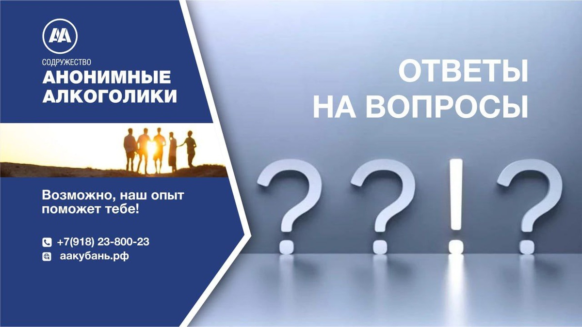 Образ жизни можно по-настоящему понять только изнутри, так как с точностью описать его не представляется возможным. Любая брошюра, стремящаяся развернуть перед читателем широкую, увлекательную, но поневоле общую картину того, что представляет собой программа АА, обязательно оставит ряд его вопросов без ответа, и так и не дает ему возможности ответить до конца на основной для него вопрос: то ли это, чего я ищу. Пойти же по другому пути и представить читателю сухой и полный перечень всех элементов программы, значило бы дать ему лишь оболочку программы, но никак не ее суть. Программа АА – это программа новой жизни, жизни без алкоголя, приведшая к трезвости сотни тысяч мужчин и женщин, отнесшихся к ней с искренней заинтересованностью. Она с успехом используется людьми самого разного общественного положения и профессий по всему миру. Мы надеемся, что эта брошюра ответила хотя бы на самые основные ваши вопросы относительно АА. Если у вас есть другие вопросы, мы постараемся ответить на них