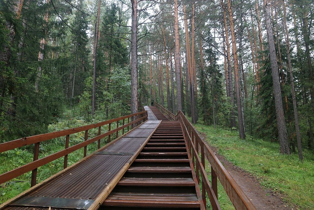 По мокрым скалам довольно много желающих полазить. Безумству храбрых поем мы песню. Встречающая нас скала именуется Слоник. Красноярские столбы и все, что их окружает, начало Навигация, как видите, имеется и весьма веселенькая. Скалы стали для меня неожиданностью - вовсе не живописные, а довольно суровые, и природа вокруг хмурая (возможно, такое впечатление только в дождливую погоду). Первый столб, высота 80 м. Вокруг него выстроен весь маршрут: сперва вы смотрите его, затем Второй Столб, затем возвращаетесь сюда и смотрите Бабок и Внучек, затем отсюда тропа ведет к Перьям и Львиным Воротам и Третьему и Четвертому Столбам. А затем вы снова выходите сюда. Дорога ко Второму Столбу прямо-таки гадкая, и уклон, и глина, и везде эти корни, идти следует очень осторожно. Те же и пейзаж из серии "Хмурое утро". У меня во всей поездке была идея фикс насчет мишек - везде они мне мерещились. Сперва я боялась их на Байкале во время высадки на остров, затем - в Аршане, потом я шарахалась в лесах во