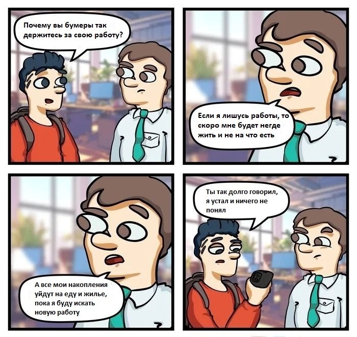 Итог: Бумера держит карьера и стабильность. Зумера держит «движуха» и возможность развиваться здесь и сейчас.