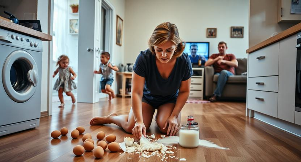 Она стояла посреди кухни, по щиколотку в молоке и яйцах, и чувствовала, как что-то внутри неё ломается. Не с треском, не с грохотом — тихо, как лопается натянутая струна.