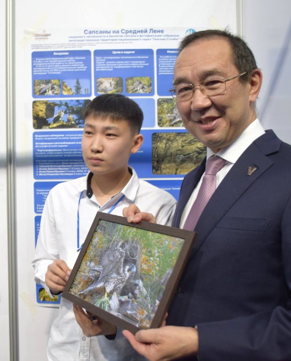 Победитель НПК «Шаг в будущее», учащийся Ойской средней школы Айсен Борисов подарил картину Айсену Николаеву, январь 2026 г.