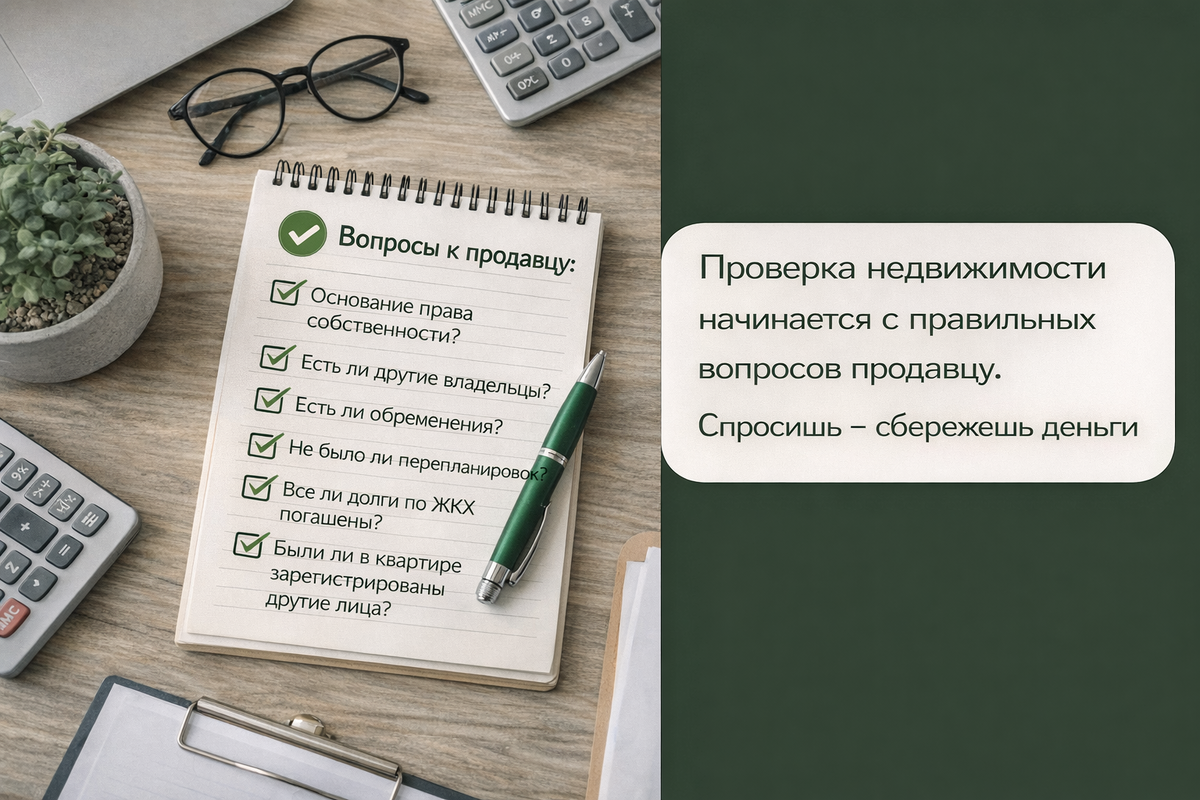 Можно сказать, что проверка квартиры при покупке начинается не с изучения документов, а с самого первого диалога. Какие вопросы задать продавцу квартиры - это ваша первая линия защиты от рисков. Один пропущенный вопрос может привести к тому, что при покупке квартиры вас обманут, и вы потеряете деньги. Этот чек-лист из 25 вопросов поможет ничего не упустить. Эти вопросы задавайте обязательно и фиксируйте ответы Осмотр с дизайнерским взглядом - это потом. Сначала - техника. 10. Кода менялись инженерные сети? (Электрика, канализация, водопровод) 11. Были ли протечки от соседей сверху или у вас к соседям снизу? Смотрите на потолок и углы 12. Проводилась ли перепланировка? Все узаконено? 13. Зимой бывает холодно? Есть ли промерзающие стены? 14. Как работает вентиляция? (Проверьте листком бумаги) 15. Какова звукоизоляция? Слышно, что происходит в подъезде/у соседей? 16. Состояние подъезда и крыши? Планируется ли капитальный ремонт и когда? 17. Каковы ежемесячные платежи за ЖКУ? Неожиданно в