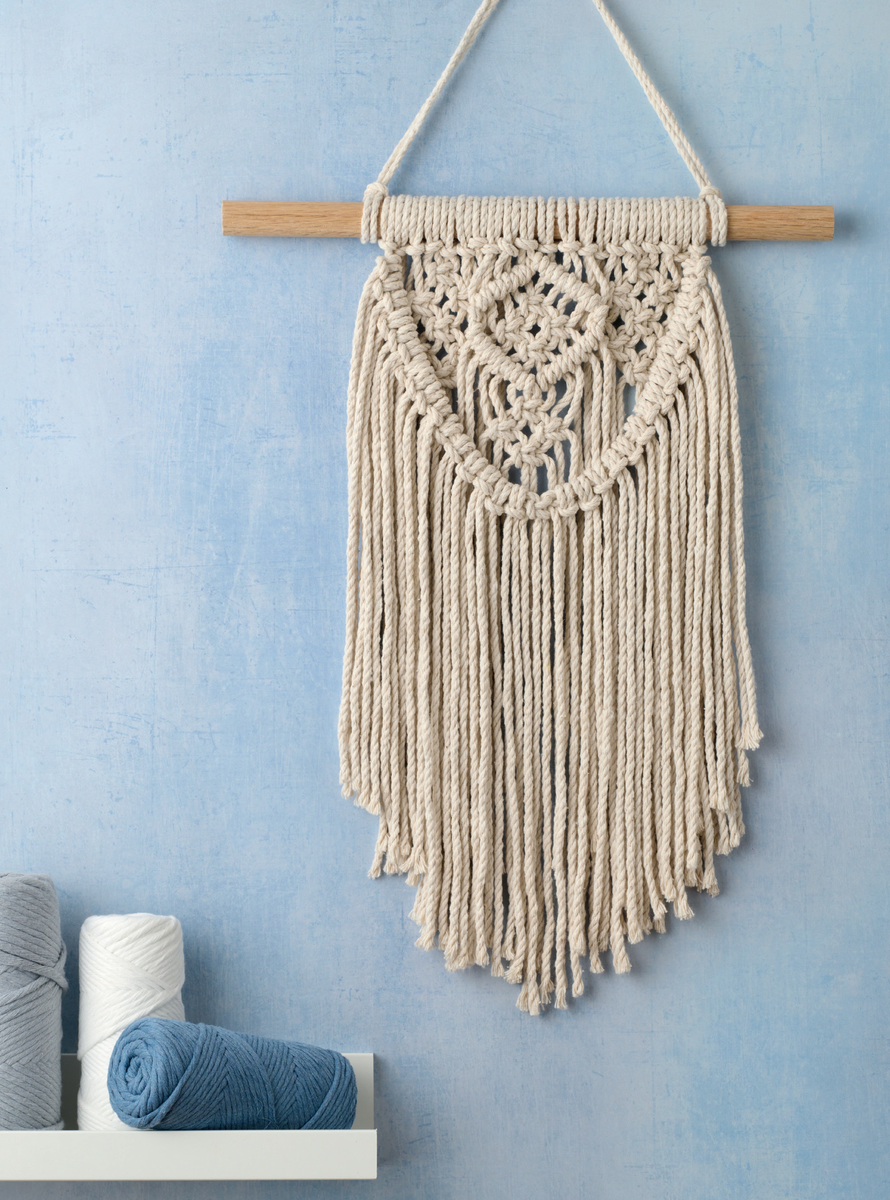 • Около 51 м 4-мм трехслойного шнура для макраме (альтернатива: хлопковый шпагат или синтетическая веревка)