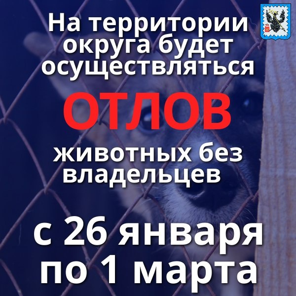 ❗В период с 26 январям по 1 марта на территории округа будет осуществляться отлов животных без владельцев