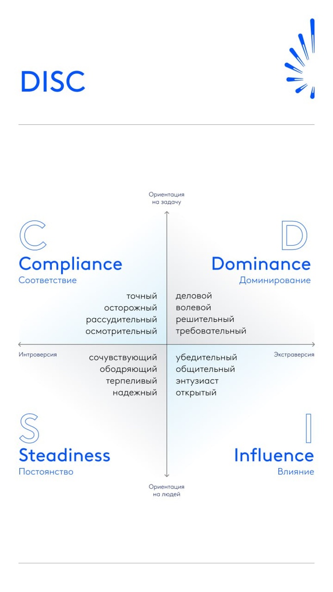 ✔️ DISC — это инструмент, который помогает увидеть, как мы действуем, общаемся и реагируем на вызовы