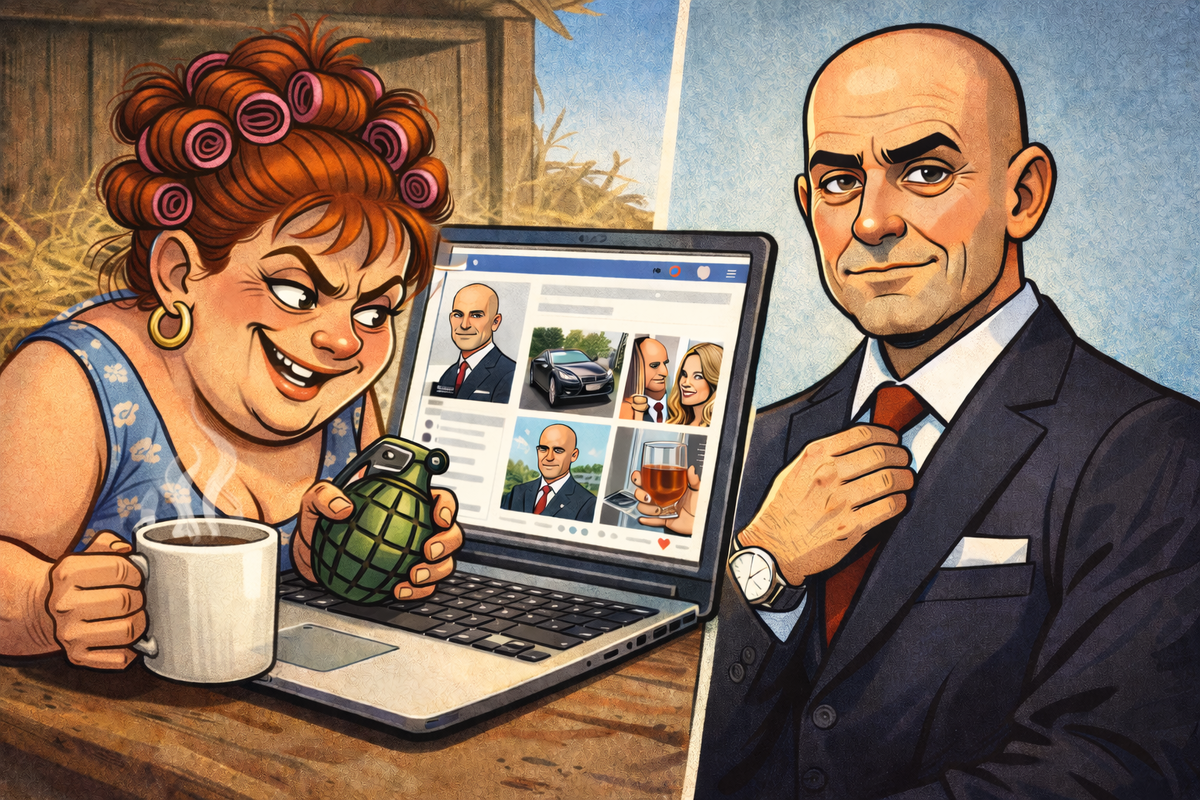 Версия 2.0 – более изощрённая. Она подписывается на его друга. Потом на жену друга. Потом на маму друга. Ставит лайк на фотографию десятилетней давности, где его одноклассник сидит в бане с рыбой, пивом и выражением экзистенциального ужаса на лице. Лайк поставлен в 23:47 — время психологического урона.