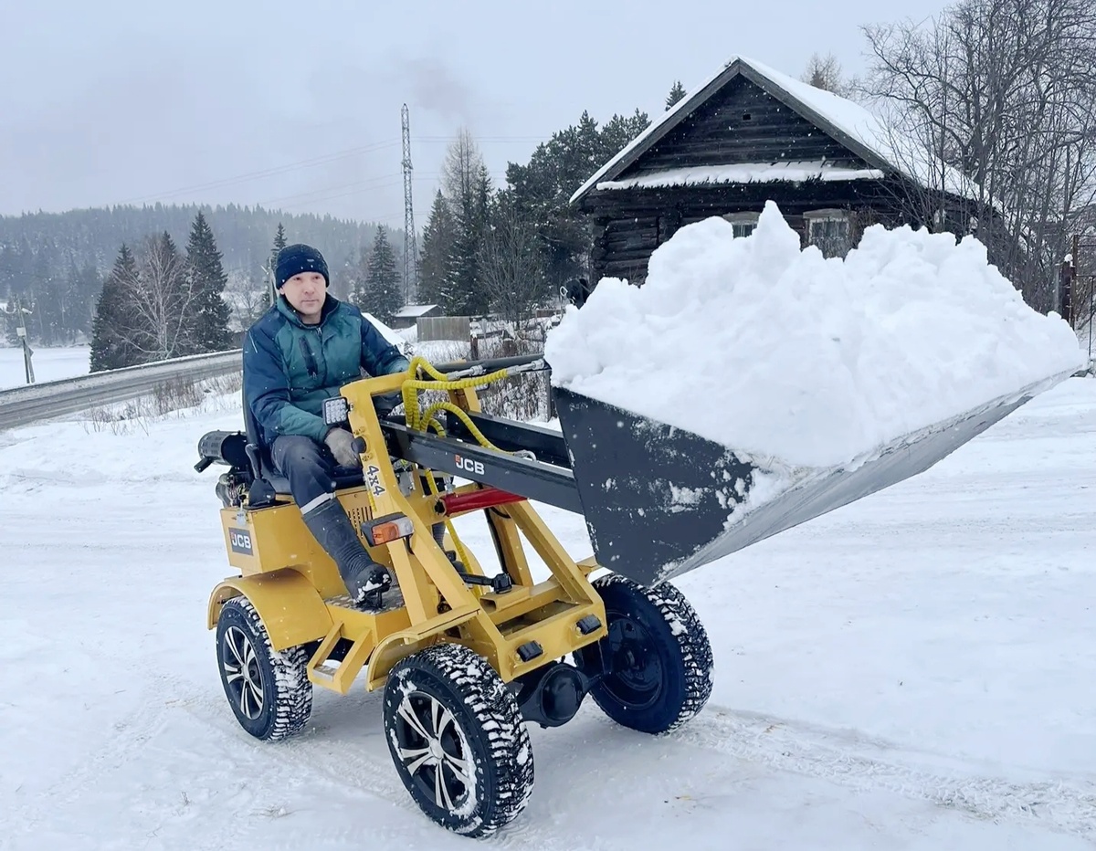 Житель поселка Шаля своими руками сделал снегоуборщик Создавать трактора у Полудницыных – дело семейное, на двоих сын и отец изготовили уже четыре колёсных техники. На счету молодого изобретателя пока только один мини-погрузчик. Но такой, что, глядя на него, сразу хочется воскликнуть: «Не машина, а конфетка!». Алексей Полудницын – уроженец посёлка Шаля, ему сорок лет, работает электриком в цехе №327 Уральского оптико-механического завода. Собрал своими руками, по сути, универсальную машину в дальнейшем. Её можно усовершенствовать по принципу «быстросъёма»: установить на стрелу ковш, щётку, бетоносмеситель, подкрепить снегоуборочный ротор, вилы для перевозки сена, цеплялки – брёвна цеплять (крюки захвата для брёвен), шнеко-ротор для установки столбов, молоток долбёжный… То есть, оснастка разнообразная для выполнения большого количества различных работ. – Пока же только снег убирать да сыпучие какие-то материалы – песок, гравий, земля. Мы живём на Сипе, там снега пропасть сколько наметае