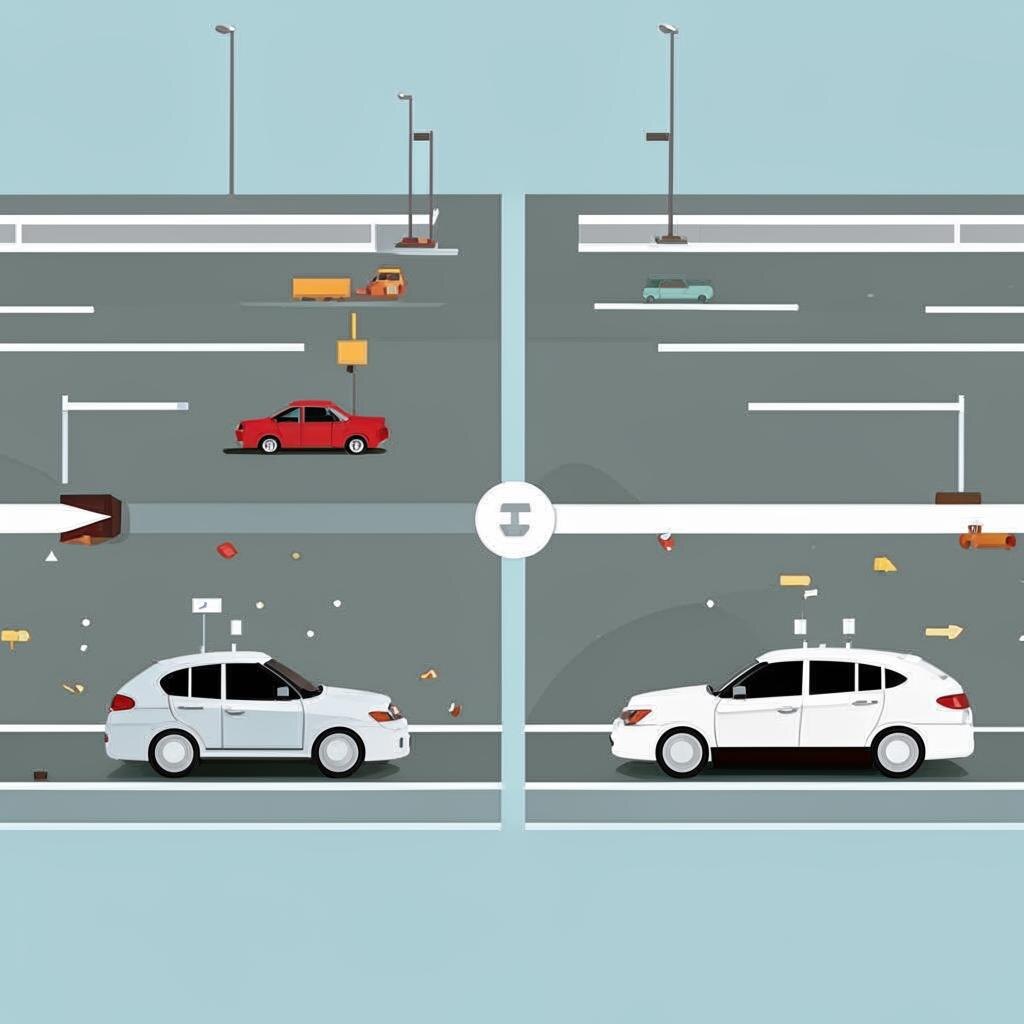 Самый мощный приём. Если нанести на дорогу не две параллельные линии, а полосы, которые постепенно сближаются, произойдёт магия. Ваш периферический взгляд (который как раз и отвечает за оценку скорости) улавливает это «схлопывание» пространства. Мозг мгновенно интерпретирует: «Дорога впереди становится уже! Значит, мой широкий автомобиль может не вписаться! Нужно сбросить скорость и быть готовым к манёвру!» Самое смешное, что само полотно дороги при этом остается прежней ширины. Меняется только рисунок на нём.