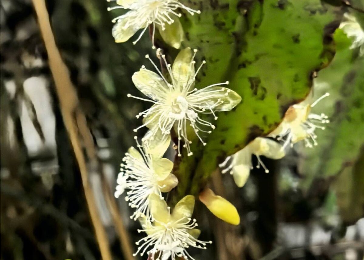 В оранжерее Ботанического сада калужского университета имени Циолковского зацвел Рипсалис продолговатый (Rhipsalis oblonga). Этот редкий гость из семейства Кактусовых в естественных условиях встречается только в Бразилии, где произрастает во влажных субтропических и тропических лесах. В отличие от большинства своих колючих родственников, рипсалис ведет образ жизни эпифита: он селится на стволах и ветвях деревьев, используя их как опору, но не паразитируя. При цветении растение покрывается мелкими, нежными цветками, придавая его длинным свисающим стеблям особое изящество.