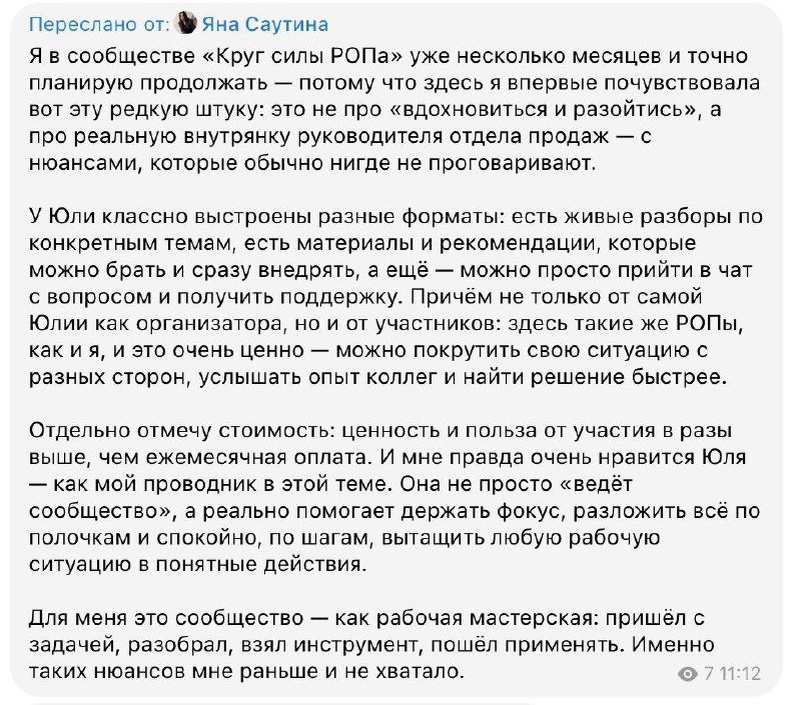 ! Очень рада, когда получаю такие сообщения, ведь это значит, что я не зря когда-то решила открыть сообщество "Круг силы РОПа". Но если ты все еще думаешь и сомневаешься, посмотри планирование тем на следующий месяц ТУТ Окно открыто до пятницы, осталось меньше 2 дней! Скорее присоединяйся к нам Забегай и выбирай свой тариф