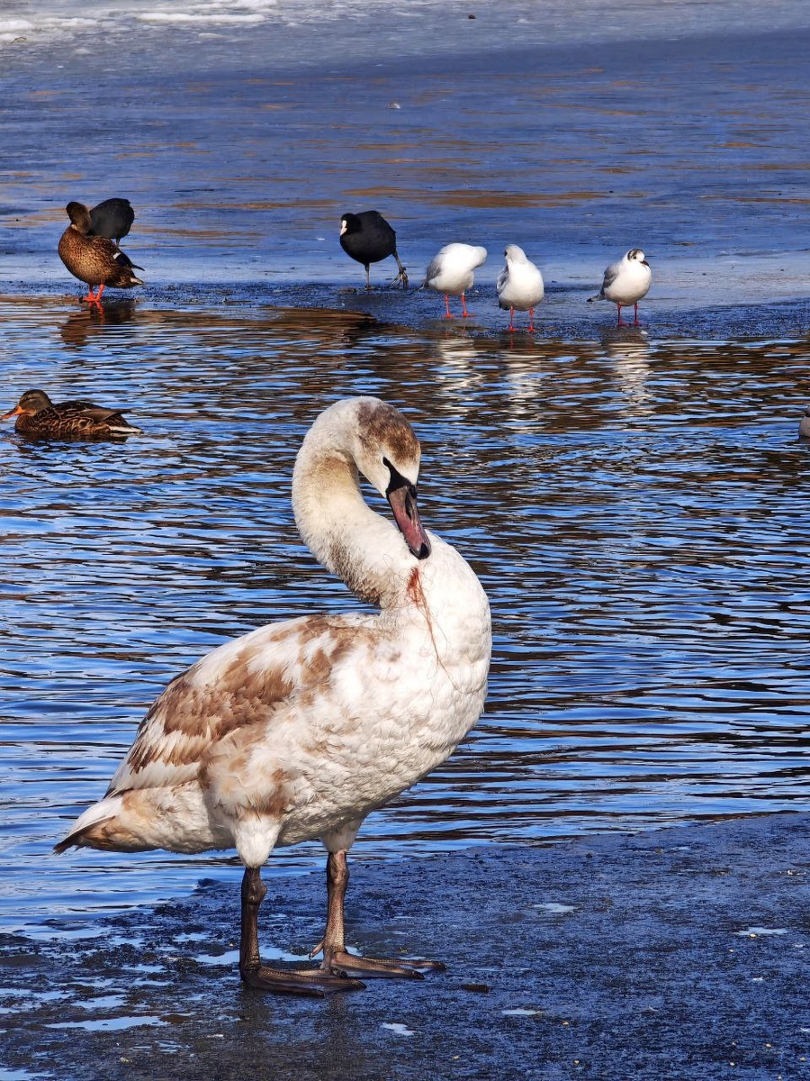 🆘Лебедь на Анапке, с крючком и рыболовной сетью на шее!