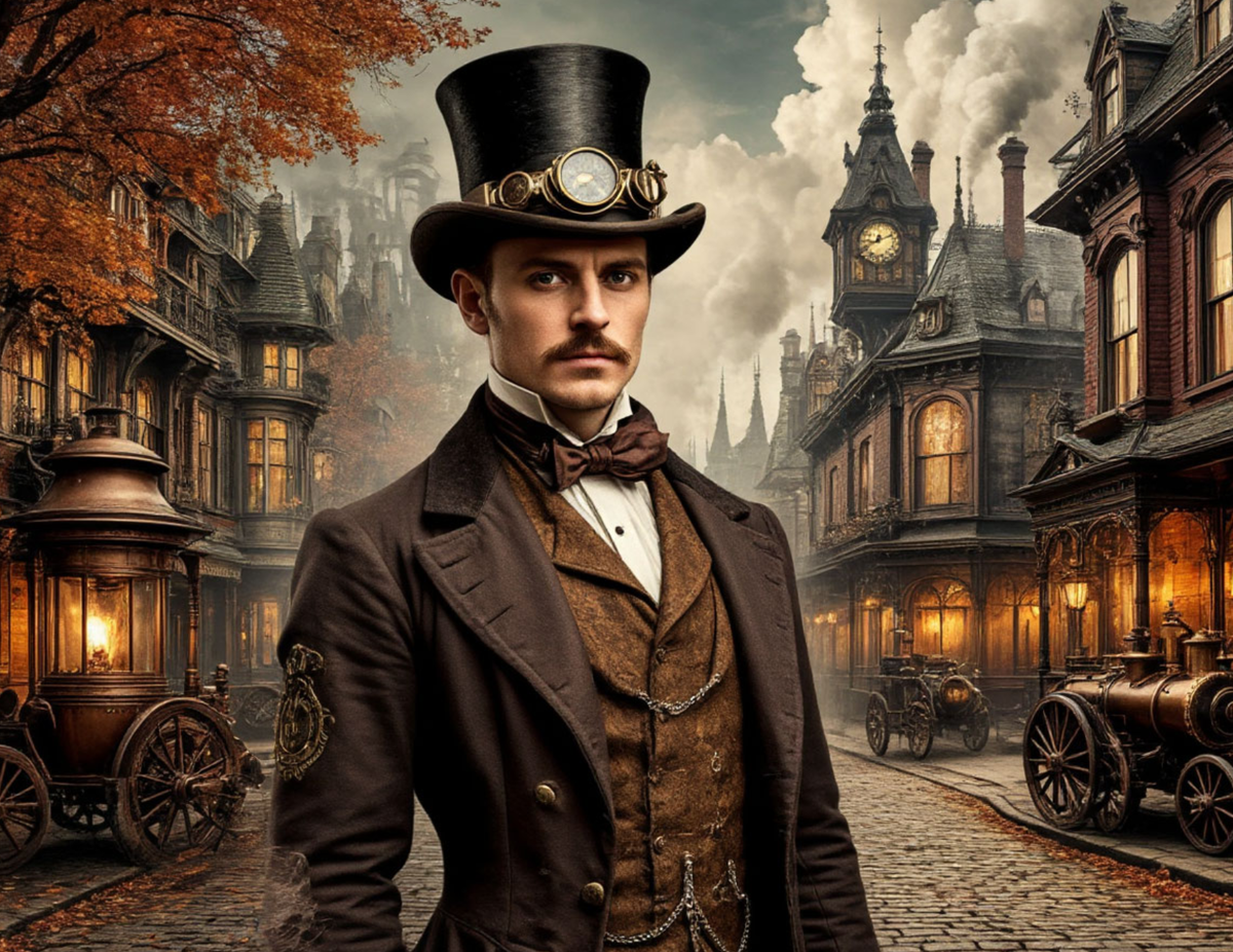 · Цилиндры, котелки, шляпы: Головные уборы являются важной частью стимпанк-образа.