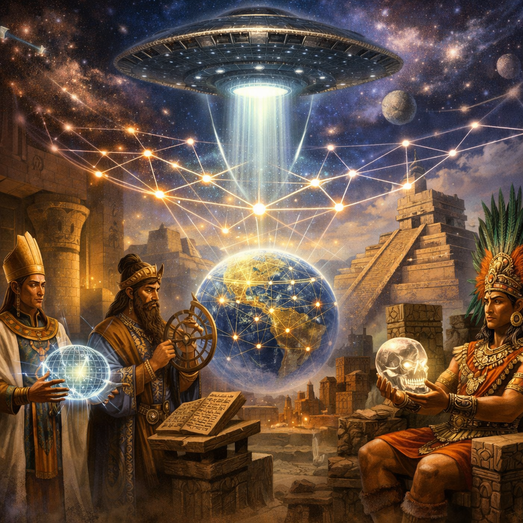 Представьте: задолго до интернета, спутников и ядерных реакторов на Земле уже существовала глобальная сеть знаний. Египетские жрецы, вавилонские астрономы и майянские правители имели доступ к информации, источник которой до сих пор остается для нас загадкой. Почему их звездные карты точны, а циклы планет высчитаны на тысячелетия вперед? Почему в мифах по разные стороны океана боги спускаются с неба в огненных колесницах и обещают вернуться?