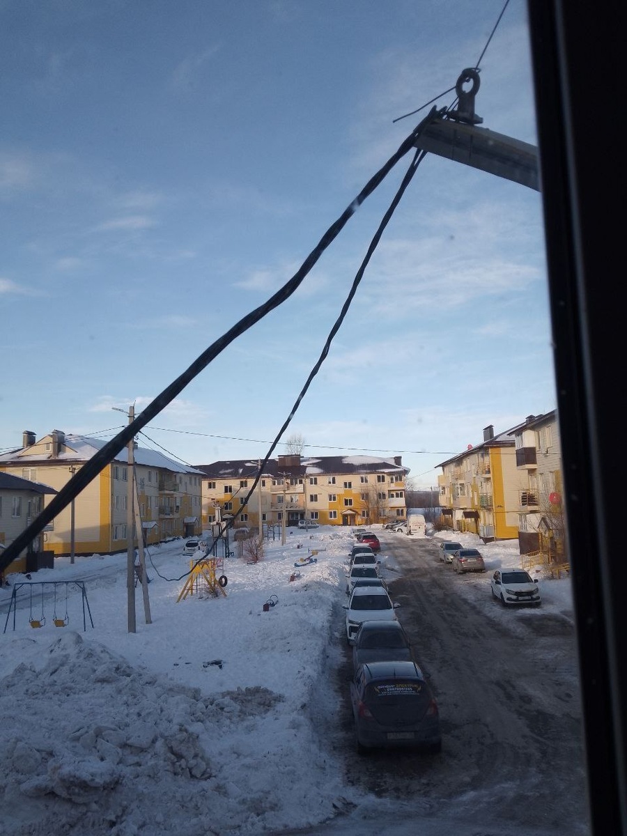 ✍✍✍ На улице Мирнинской, 32/1 подъезд 1 в Оренбурге..... Вот так висит сорванный кабель с 6 января. Просим принять меры!