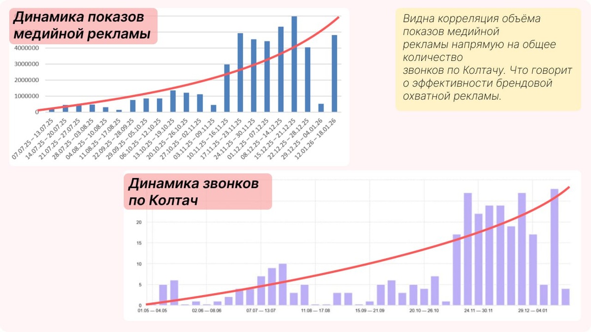 Кто как оценивает медийную рекламу. Чаще всего по промежуточным показателям, например, охват, CPM, SOV и т.д. Отсюда у бизнеса часто встречается мнение: «Смысл в этой медийке? Бюджет огромный, на выходе одни показы» Но современный мир движется вперёд и оценивать медийку можно и нужно гораздо глубже по воронке. На картинке привожу вам пример с нашего проекта, где за счёт медийной рекламы удалось значительно прирасти по звонкам. Кстати — типовая ситуация, клиент уже крутит медийную рекламу, но не видит её эффективности. В таких случаях мы показываем её в наших аудитах. Хотите также? Пишите в личку «аудит медийной рекламы», сделаем бесплатно!😉