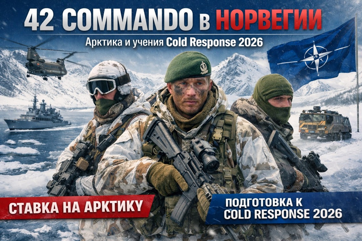 42 батальон "Commando" Королевской морской пехоты Великобритании начал подготовку к развертыванию на территории Норвегии. Командование ВМС Великобритании обозначало, что силы специальных операций активизируют свои действия в Арктике и переходят от формата сезонных зимних ротаций к круглогодичным операциям в Северной Норвегии. В качестве основного пункта дислокации определена база "Викинг (Camp Viking, район Øverbygd на севере Норвегии). По данным штаба ВМС, в рамках текущего цикла планируется задействовать около 1 500 военнослужащих, усиленных техникой повышенной проходимости и вертолетной эскадрильей. Переброску и развертывание сил и средств 42 батальона "Commando" планируется осуществить в ходе международного учения "Cold Response 2026", которое пройдет в Норвегии с 2 по 23 марта 2026 года. Норвежские вооружённые силы сообщают, что активная фаза маневров запланирована на 9–19 марта 2026 года; заявлены около 25 000 участников из 14 стран, а формат учений включает взаимодействие н