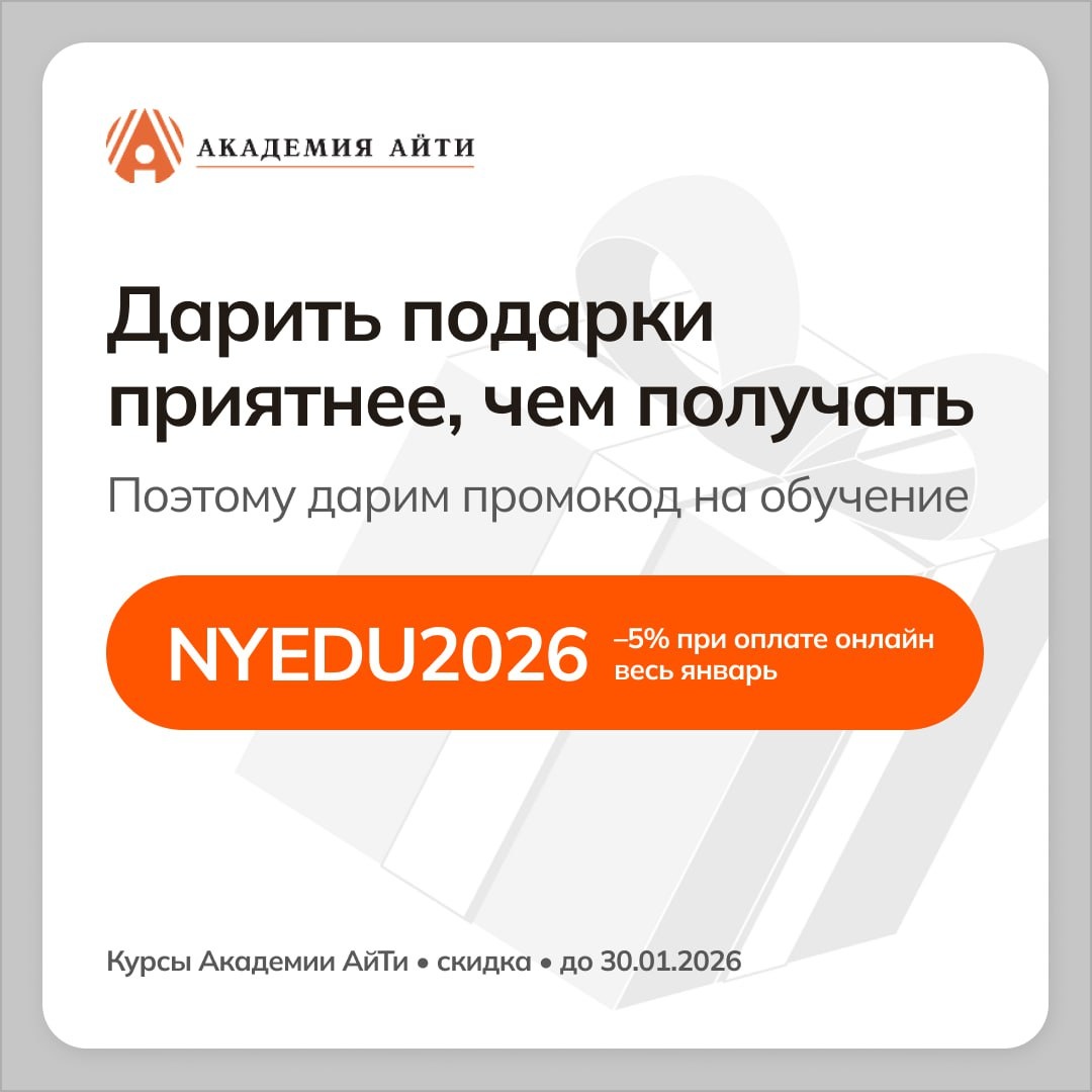 Праздники уже прошли, а привычка осталась 🎅 Поэтому дарим вам — обучение со скидкой 🎁 До конца января действует акция: –5% при оплате онлайн по промокоду NYEDU2026. Если выбирать направление, к которому сейчас действительно стоит присмотреться, — Искусственный интеллект. По данным исследования Высшей школы бизнеса ВШЭ, 29% российских компаний уже внедряют ИИ-аналитику для бизнеса, а 59% изучают применение ИИ-агентов. Gartner в обзоре технологических трендов на 2026 год также отмечает: фокус смещается в сторону повсеместного применения ИИ. Из курсов по ИИ сейчас особенно актуальны: — Нейросети в маркетинге Решение ключевых маркетинговых задач: от создания контента до аналитики и автоматизации процессов. — Нейросети в продажах Использование нейронных сетей для повышения конверсии и удержания клиентов. — n8n и ИИ-агенты Автоматизация бизнес-процессов и разработка ИИ-агентов без сложной разработки. — Этика ИИ Ключевые принципы работы с ИИ: защита данных, конфиденциальность, оценка