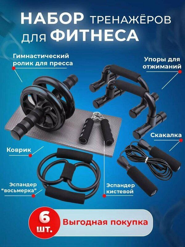 🔰🔰 Koʻp qirrali 6 ta 1 da fitnes toʻplami: rolik, ogʻirliklar, sakrash arqoni va qarshilik tasmalari