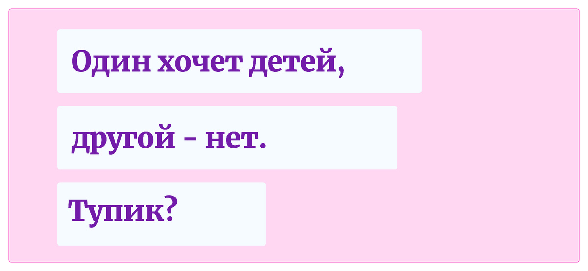 Иногда пары приходят в точку одной из самых трудных развилок в отношениях. Вы любите друг друга, у вас может быть общий быт, история, планы. Но в фундаменте обнаружилась трещина, которая, кажется, не подлежит заделке. Один из вас видит будущее с детской коляской и школьными собраниями. Другой — видит свободу, путешествия, тишину или карьеру. Давление общества, биологические часы, страх упустить или, наоборот, страх ошибиться — всё это создаёт тяжёлый клубок чувств.