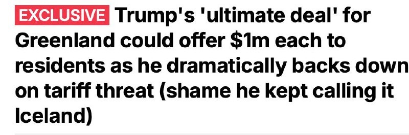 Дональд Трамп рассматривает идею предложить каждому жителю Гренландии по $1 млн в обмен голос за присоединение острова к США на референдуме, сообщает Daily Mail. В Гренландии проживает около 56–57 тыс. человек, и «сделка» могла бы обойтись примерно в $57 млрд. В пересчете на рубли – больше 77 млн на человека. По меркам Вашингтона, цена вполне «подъемная» за контроль над огромным арктическим регионом с ресурсами и стратегическим положением. Таким образом, при поддержке местного населения, можно миновать согласования с Данией и ЕС.