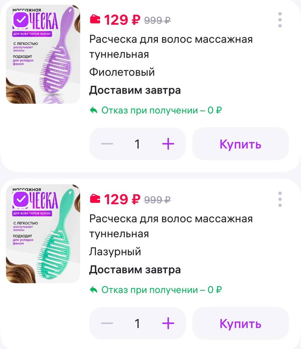 Расческа для волос массажная туннельная