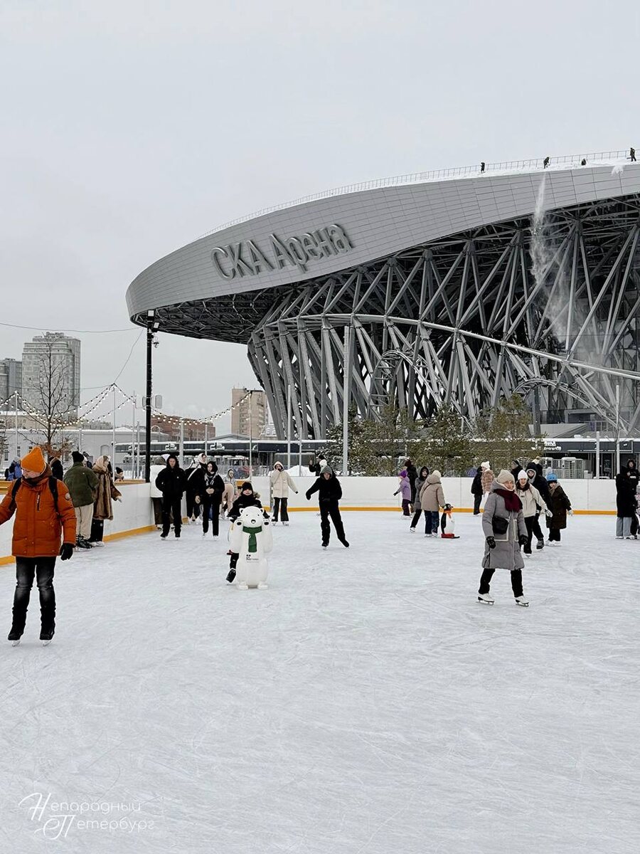 » ⛸️ В этом зимнем сезоне открылся новый уличный каток у «СКА Арены», территория которого включает в себя основное ледовое поле и прогулочные дорожки с фонариками. Каток работает ежедневно. Стоимость входного билета – от 200₽, прокат – 350₽. Также оказывают услуги по заточке коньков, прокату защитной экипировки и есть камера хранения. Для посетителей также доступны и другие развлечения: ледяные горки, фудтраки и тематические зимние мероприятия. 📍Адрес – пр. Юрия Гагарина, 8 #непарадныйпетербург @vladislavkarpyuk