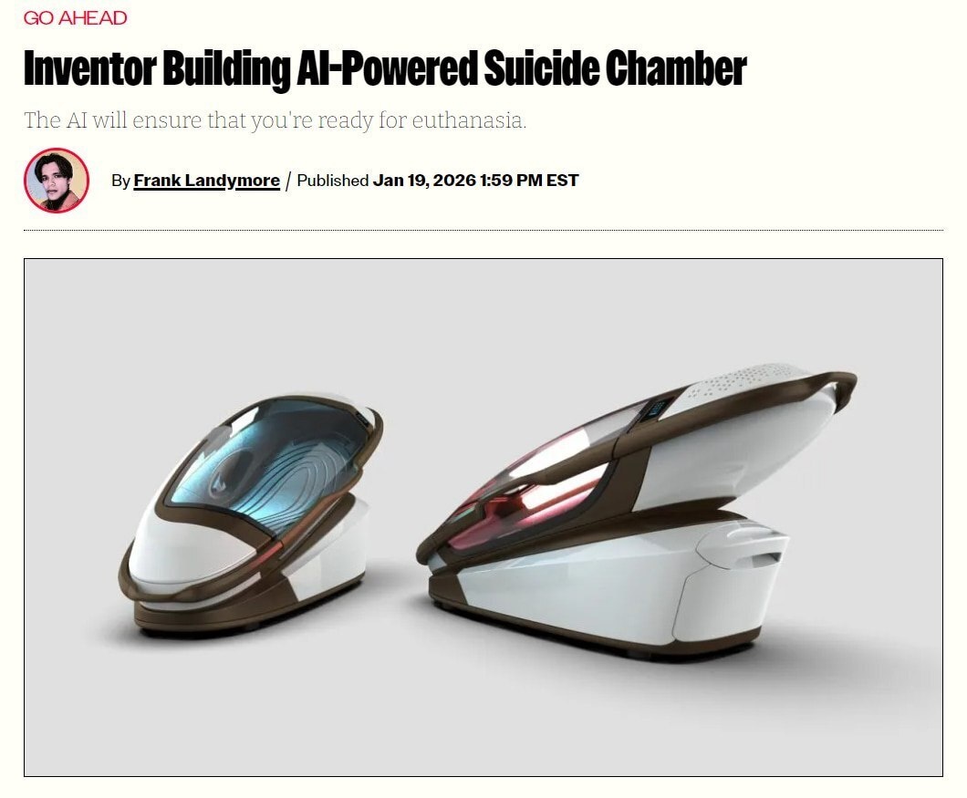 Фото: скриншот с сайта futurism.com Это уже не из фильма ужасов. Это реальность, которая наступила в 2026 году. Автор капсулы Sarco, той самой, для эвтаназии, выкатил финальную версию – "Double Dutch". Теперь не врач, не психолог, не живой человек, а нейросеть будет решать, готов ли ты попрощаться с жизнью. Без сочувствия, без попыток понять, просто холодный алгоритм. Разум против сердца. И самое жуткое – эту штуку можно распечатать где угодно, капсула смерти, доступная каждому. ЭТАПЫ ПРОХОЖДЕНИЯ ИИ-ТЕСТА PSYCHO-READINESS Заходишь в онлайн-систему, где всем рулит ИИ. Пятиминутный "разговор" с аватаром, который задает вопросы о твоем состоянии, о том, зачем тебе это, о твоих тараканах в голове. Никаких душевных метаний с профессионалом, просто ответы для бездушной машины. Вердикт – "добро" или "отказ". Если прошел "собеседование", получаешь код, который действителен всего сутки. За это время нужно найти капсулу, залезть в неё и нажать кнопку. Не успел? Проходи тест заново. Никакого вре