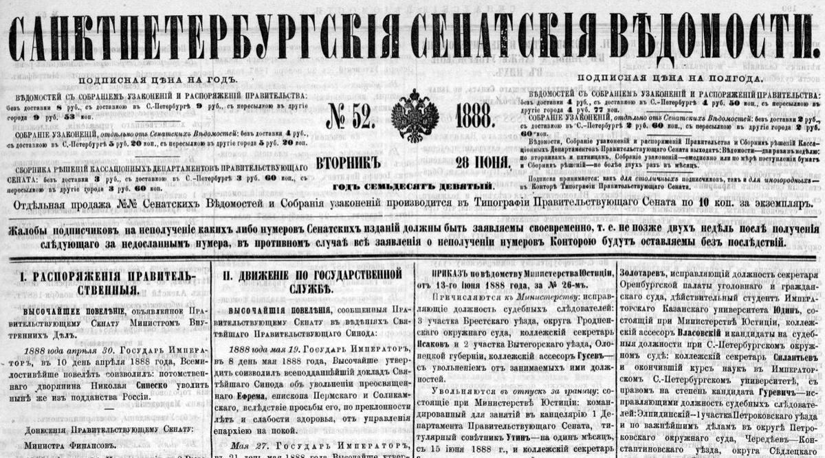 Санкт-Петербургские Сенатские ведомости. 1809-1917. 1888 год № 52, вторник 28 июня. Стр. 6 скан. От 17 июня 1888 года, № 73. По Указу Его Императорского Величества, Правительствующий Сенат слушали: представления начальств о производстве и переименовании в чины. Приказали: Обнародовать, чрез припечатание указа в Сенатских ведомостях, для сведения и должного, до кого касаться будет, исполнения, что Правительствующим Сенатом: а) Произведены, за выслугу лет, со старшинством: По лесному департаменту Министерства Государственных Имуществ и его ведомству: Стр. 7 скан. В коллежские ассесоры- титулярные советники: Исполняющие должности лесничих 1 разряда: Казанской губернии: Бронислав -Иосиф Стебельский, с 1 апреля. https://yandex.ru/archive/catalog/5276a377-a478-44b2-8ab5-81cf1b9b7fdf/7