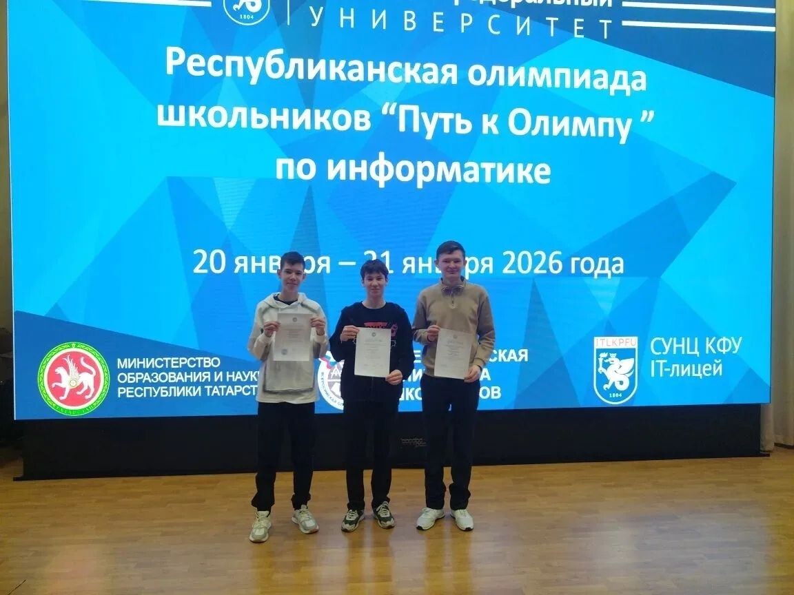 16-21 гыйнвар көннәрендә Казан шәһәренең Универсиада авылында информатика фәненнән олимпиадалар узды. «Робототехника» профиле буенча төбәк этабында Балтач урта мәктәбенең 10 сыйныф укучысы Закиров Әмирхан призер булды, җитәкчесе Фәйзрахманов Ильвир Рафаэль улы. «Олимпка юл» республика олимпиадасының йомгаклау этабында Балтач гимназиясенең 9 сыйныф укучысы Заһидуллин Нияз (җитәкчесе Нәбиев Ранис Ренат улы),11 сыйныф укучысы Петров Нияз, Балтач гимназиясенең (җитәкчесе Нәбиев Ранис Ренат улы), Чепья урта мәктәбенең 11 сыйныф укучысы Васильев Станислав (җитәкчесе Плотникова Анна Владимировна)призерлар булдылар. Җиңүчеләрне һәм аларның остазларын котлыйбыз. Бүгенге җиңүләрнең уңышлары киләчәк казанышларның нигезе һәм алдагы казанышлар өчен илһам булсын.