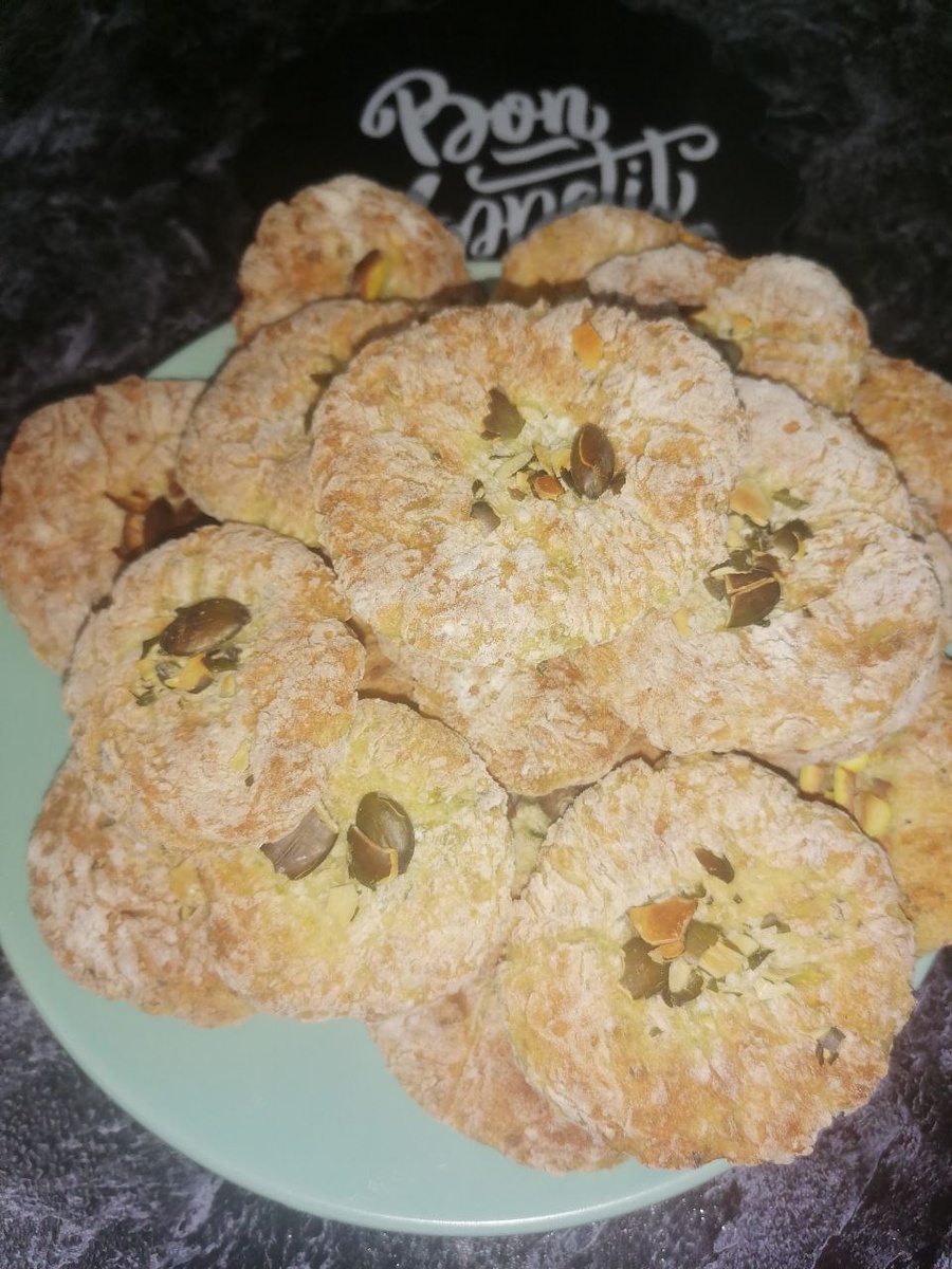 Дорогие друзья, хочу поделиться рецептом печенья, которое стало моим фаворитом. Оно нежное, ароматное и при этом не вредит фигуре — всё благодаря авокадо! Этот плод заменяет масло, сохраняя текстуру выпечки. А чтобы печенье стало ещё вкуснее, добавьте в начинку: 1) Сначала хорошенько промоем авокадо и аккуратно промокнём бумажным полотенцем — пусть лишняя влага уйдёт. Теперь берём блендер, готовим его к работе. Дальше — самое простое: снимаем кожуру, вынимаем косточку и отправляем мякоть в чашу блендера. Включаем — и вуаля, масса готова! Я не стала делать из авокадо однородное пюре — оставила немного кусочков, чтобы масса получилась интереснее по текстуре. 2) Взяла зип-пакет, положила туда тыквенные семечки и раздавила их, чтобы получилась нежная стружка. 3) Берём глубокую миску и складываем туда всё, что подготовили: авокадо, муку, семечки, сахар и наливаем 100 мл воды. 4) Теперь месим тесто — оно получится немного грубоватым. При необходимости добавляйте муку. 5) Далее формируем и