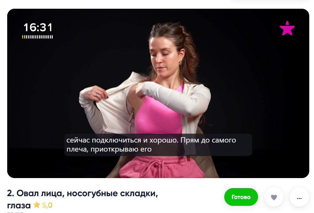 Пока останавливаюсь на комплекте тренировок: лицо + шея, скоро пойду дальше. Почему так постепенно? Потому что после того, как меня очень сильно продуло, я не могу активно двигаться. Боли уже нет такой сильной, но всё еще потерскивает.