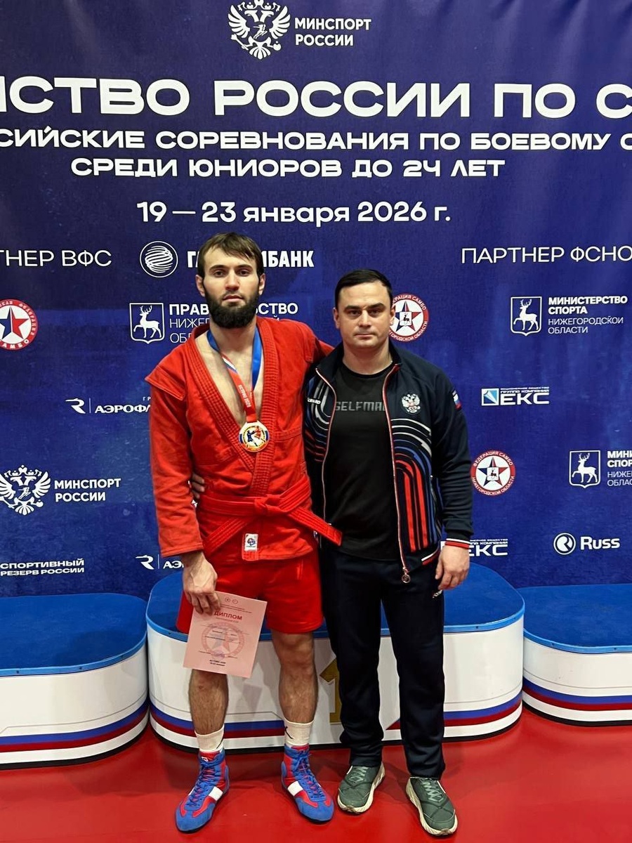 На первенстве России по самбо среди спортсменов не старше 24 лет золотую медаль завоевал Шарип Кудавасов. Челябинский борец выиграл турнир в дисциплине «боевое самбо» в категории до 79 килограммов. Бронзовым призером соревнований стал еще один южноуральский спортсмен Матвей Ананьев, сообщает результаты Всероссийская федерация самбо. Соревнования сильнейших самбистов страны принимает город Кстово в Нижегородской области. Эти старты стали первыми для российских борцов — ближайшего резерва национальной сборной. Отличились на турнире и два спортсмена из Челябинской области. В весовой категории до 79 килограммов в боевом самбо победителем первенства России стал Шарип Кудавасов. Воспитанник челябинской СШОР по дзюдо «Локомотив» благодаря победе завоевал также путевку на Кубок Европы в Ереван (Армения). Занимается спортсмен под руководством тренера Евгения Базилова. Самбо. Первенство России среди спортсменов не старше 24 лет. Дисциплина «боевое самбо». Весовая категория до 79 кг: 1. Шарип Куд