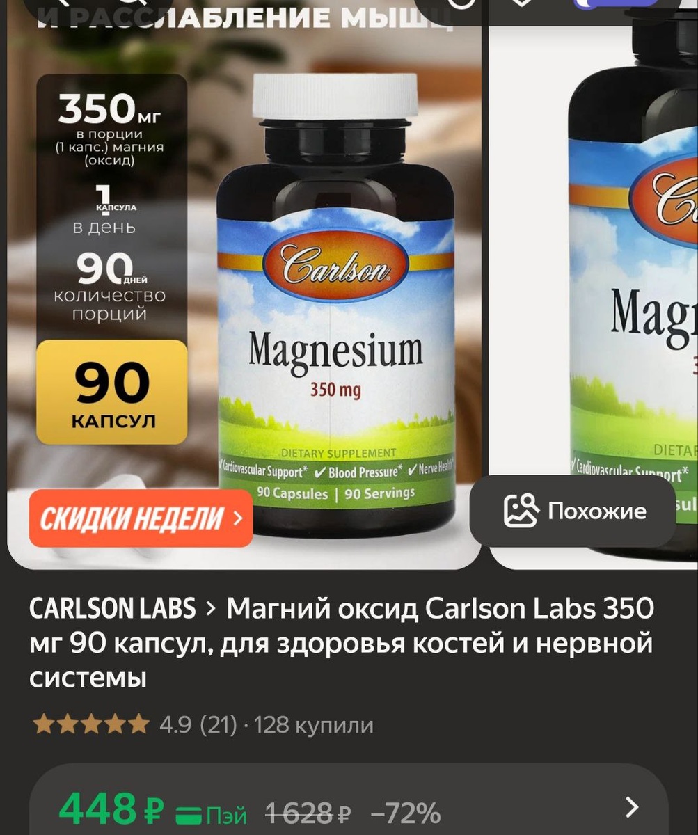 π»ΠΠ°Π³Π½ΠΈΠΉ ΠΎΠΊΡΠΈΠ΄ Carlson Labs 350 ΠΌΠ³ 90 ΠΊΠ°ΠΏΡΡΠ», Π΄Π»Ρ Π·Π΄ΠΎΡΠΎΠ²ΡΡ ΠΊΠΎΡΡΠ΅ΠΉ ΠΈ Π½Π΅ΡΠ²Π½ΠΎΠΉ ΡΠΈΡΡΠ΅ΠΌΡ - 448Ρ (Ρ.ΠΏΡΠΉ
