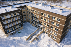 В городе Озеры в районе Коммунистической площади подходит к завершению строительство пятиэтажного жилого дома, предназначенного в том числе для переселения граждан из аварийного жилищного фонда. Объект является важной частью социальной программы и реализуется в рамках обновления жилой застройки городского округа Коломна. На сегодняшний день строительная готовность дома оценивается примерно в 85 процентов. Здание состоит из семи подъездов, его общая площадь составляет около восьми тысяч квадратных метров. Основные строительные работы уже выполнены: завершен монтаж внутренних инженерных коммуникаций, включая системы отопления, водоснабжения и электроснабжения, а также строительство внешних инженерных сетей, необходимых для полноценной эксплуатации дома. В настоящее время подрядчик сосредоточен на завершающих этапах работ, включая внутреннюю отделку мест общего пользования и подготовку объекта к сдаче. Параллельно ведется координация с профильными службами для последующего ввода здания в
