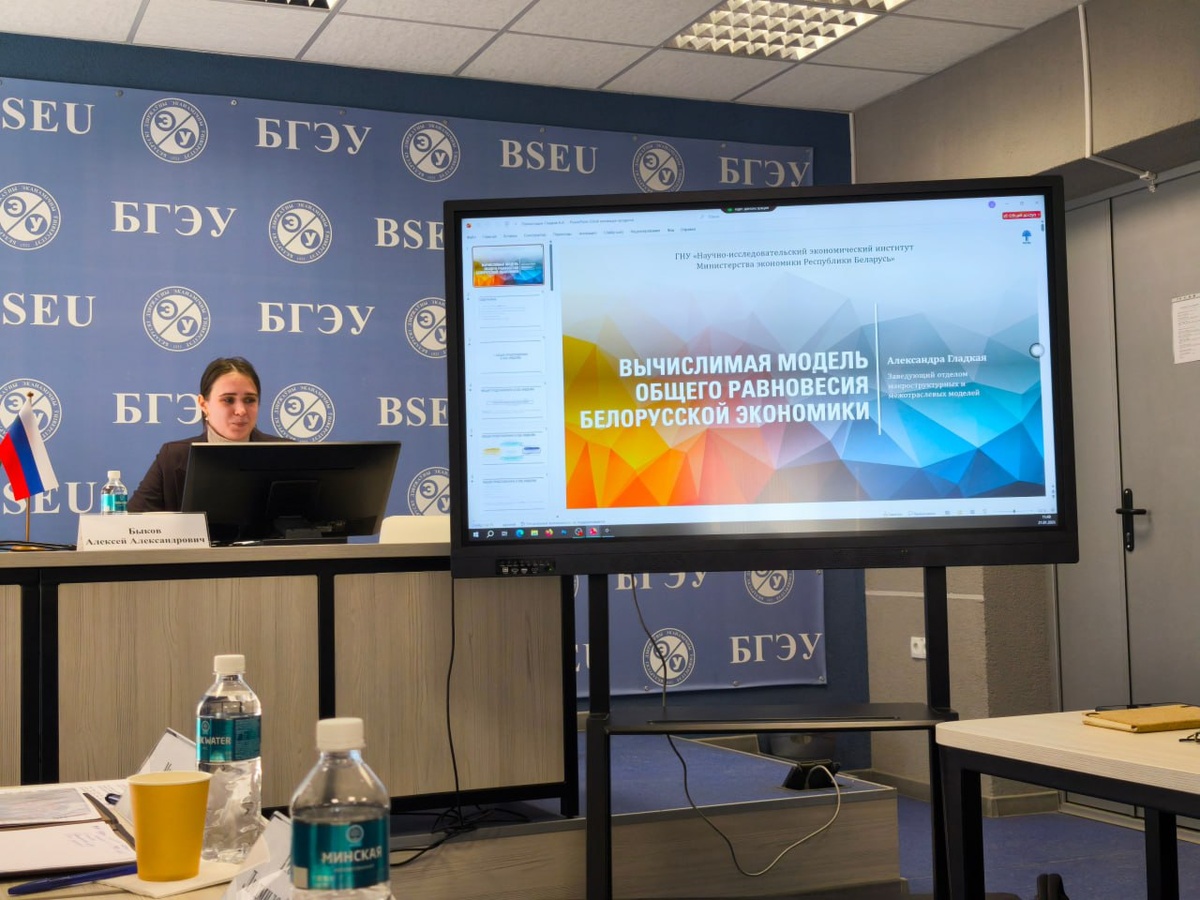 😎😎😎😎😎😎😎 🖼️Сотрудники НИЭИ Минэкономики Николай Драгун, Ирина Телеш и Александра Гладкая приняли участие в работе круглого стола «Затраты–Выпуск», приуроченного к 120-летию со дня рождения выдающегося экономиста, лауреата Нобелевской премии Василия Леонтьева, который прошел в БГЭУ. 🎤Заведующая отделом макроструктурных и межотраслевых моделей НИЭИ Минэкономики Александра Гладкая представила доклад «Вычислимая модель общего равновесия белорусской экономики». 💬Преподаватели БГЭУ, Института народнохозяйственного прогнозирования РАН, специалисты органов государственного управления и научных организаций обсудили актуальные вопросы применения модели «затраты–выпуск» в современных условиях, перспективы развития межотраслевых балансов, а также роль статистики и прогнозирования в обеспечении устойчивого экономического роста. #БГЭУ #экономика #конференция НИЭИ Минэкономики|сайт|Telegram|Дзен|Facebook|TikTok