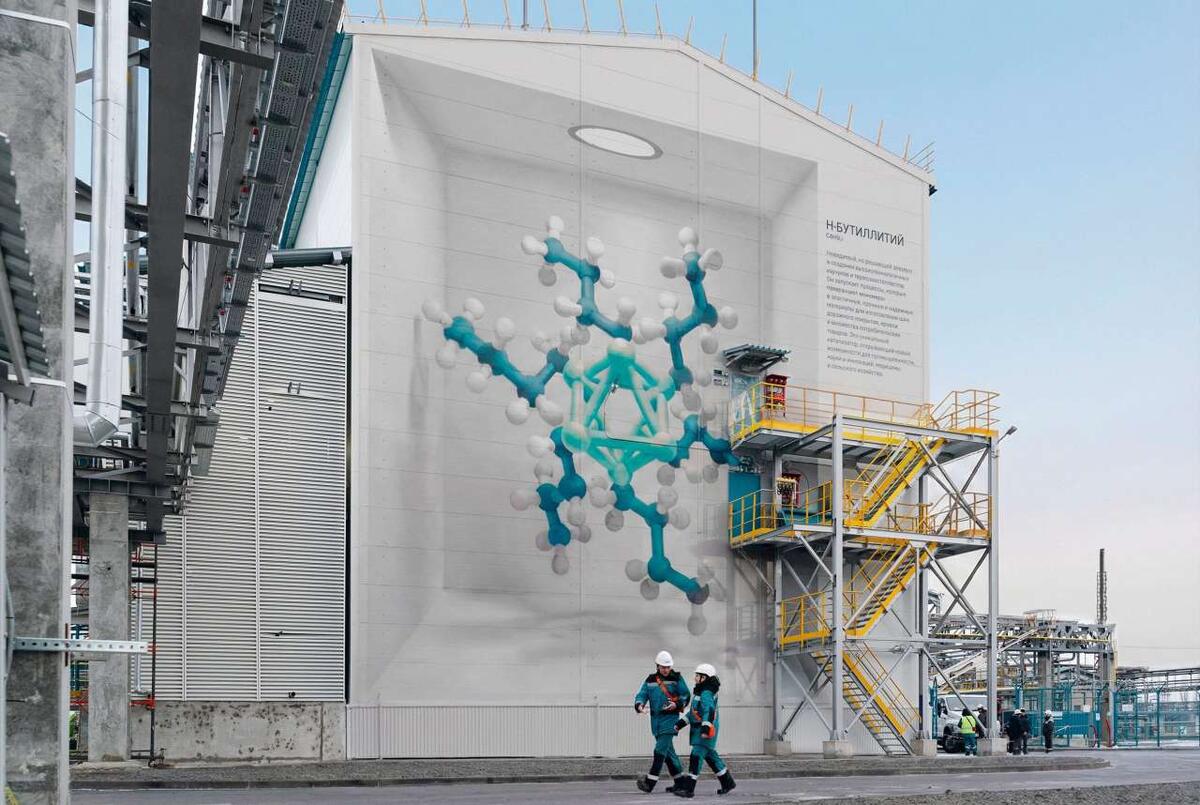 На воронежском предприятии СИБУРа («Воронежсинтезкаучук») появился масштабный промышленный мурал. Он стал визуальным символом нового высокотехнологичного производства н-бутиллития – ключевого катализатора для выпуска современных синтетических каучуков и термоэластопластов. Работы по созданию мурала длились с ноября по декабрь 2025 года и завершились синхронно с окончанием строительства производства. Объект входит в программу СИБУРа «АртНаЗавод», которая превращает заводы компании в галер... Центр композиции – молекула н-бутиллития, изображенная как флагманский продукт - решающий элемент в создании высокотехнологичных, надежных, современных материалов для изготовления шин, дорожного покрытия, кровли и множества потребительских товаров. Это уникальный катализатор, открывающий новые возможности для промышленности, науки и инноваций, медицины и сельского хозяйства. Мурал разместился прямо на здании основного производства. Площадь изображения – 333 кв метра. Дополняют композицию изображения