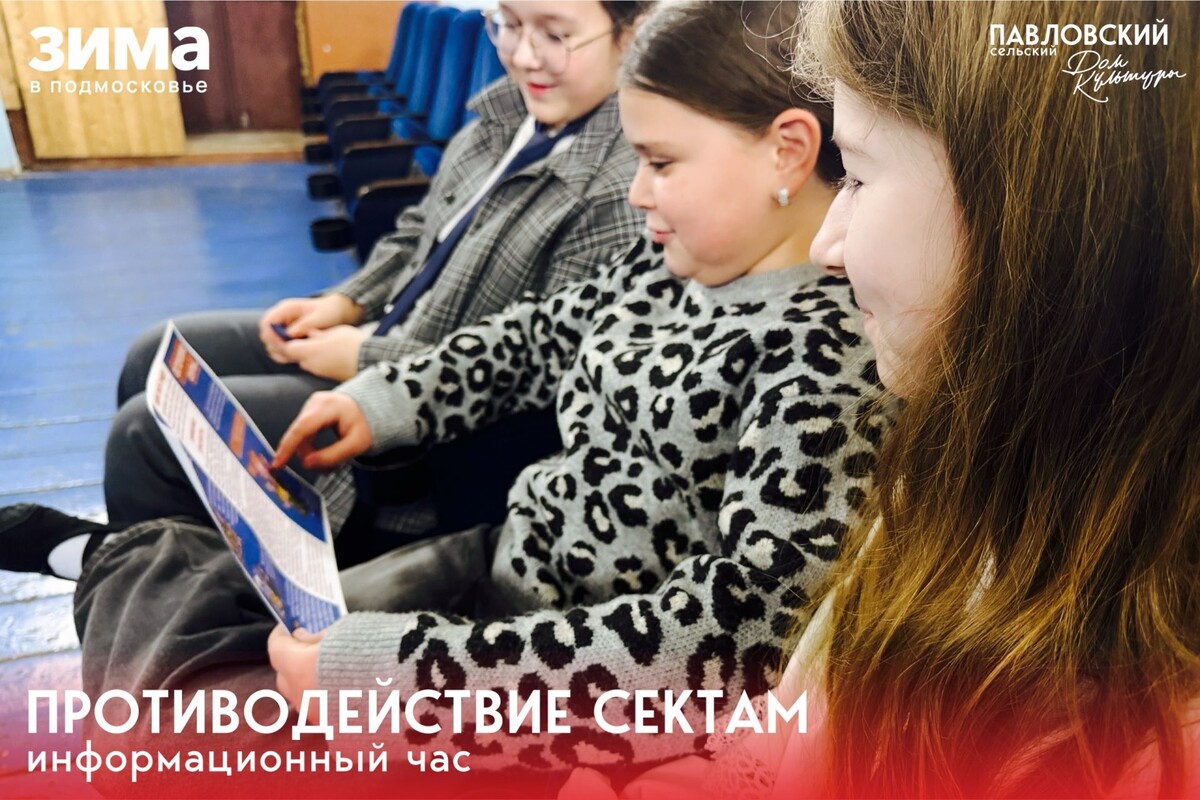✨ НОВОСТИ. В Павловском сельском Доме культуры состоялся информационный час «Противодействие сектам», призванный повысить осведомлённость детей и подростков о рисках,связанных с вовлечением в деструктивные объединения. В ходе встречи обсуждались следующие ключевые вопросы: ❗️что такое секта и каковы её отличительные признаки; ❗️психологические приёмы манипулирования, применяемые в сектах; ❗️правовые аспекты деятельности религиозных и псевдорелигиозных объединений в РФ; ❗️алгоритмы действий при столкновении с вербовщиками; ❗️куда обращаться за помощью. 📆 21.01.2026 🏢 Павловский сельский дом культуры (СДК) 📍 г.о.Домодедово, дер.Павловское, ул.Вокзальная, д.18 ✅ Мероприятия Домодедово https://dzen.ru/id/66f10385cc4c5a16f7b5fb02 http://vk.com/domodedovo_events http://dzen.ru/domodedovo_events