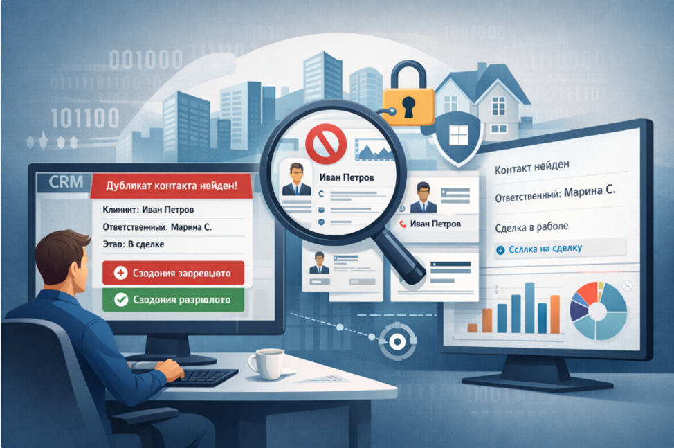 - В CRM внедрено наше решение по проверке дублей сделок при автоматическом создании: